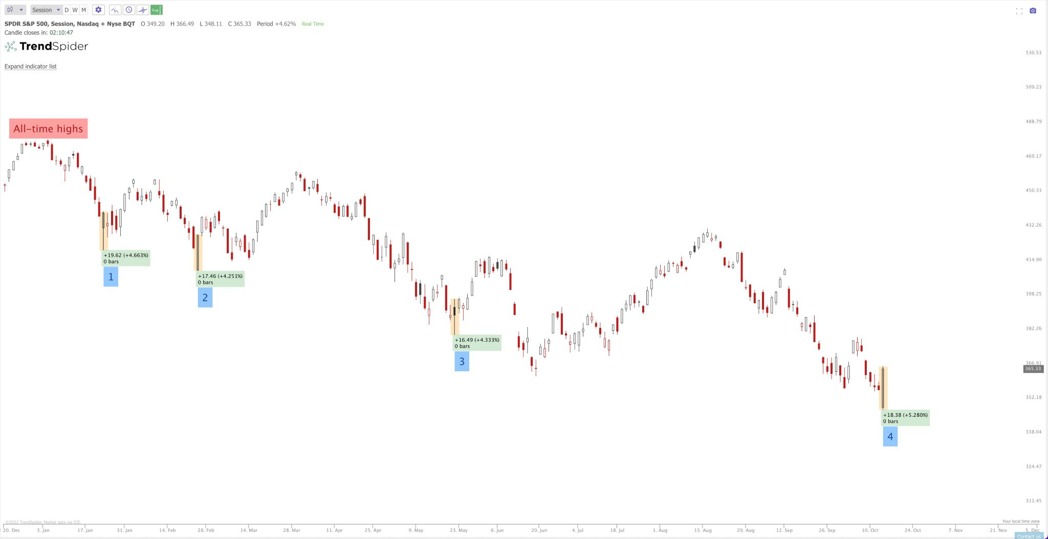 Let's see what has happened in the markets on those days when there has been such a pronounced upward movement.