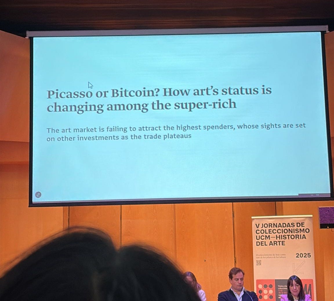 The other day I got a WhatsApp from my fiancée. She works in the art world (auctions, collectors, that whole “beautiful object” ecosystem) and she sent me a photo from a conference she was attending. The slide read: