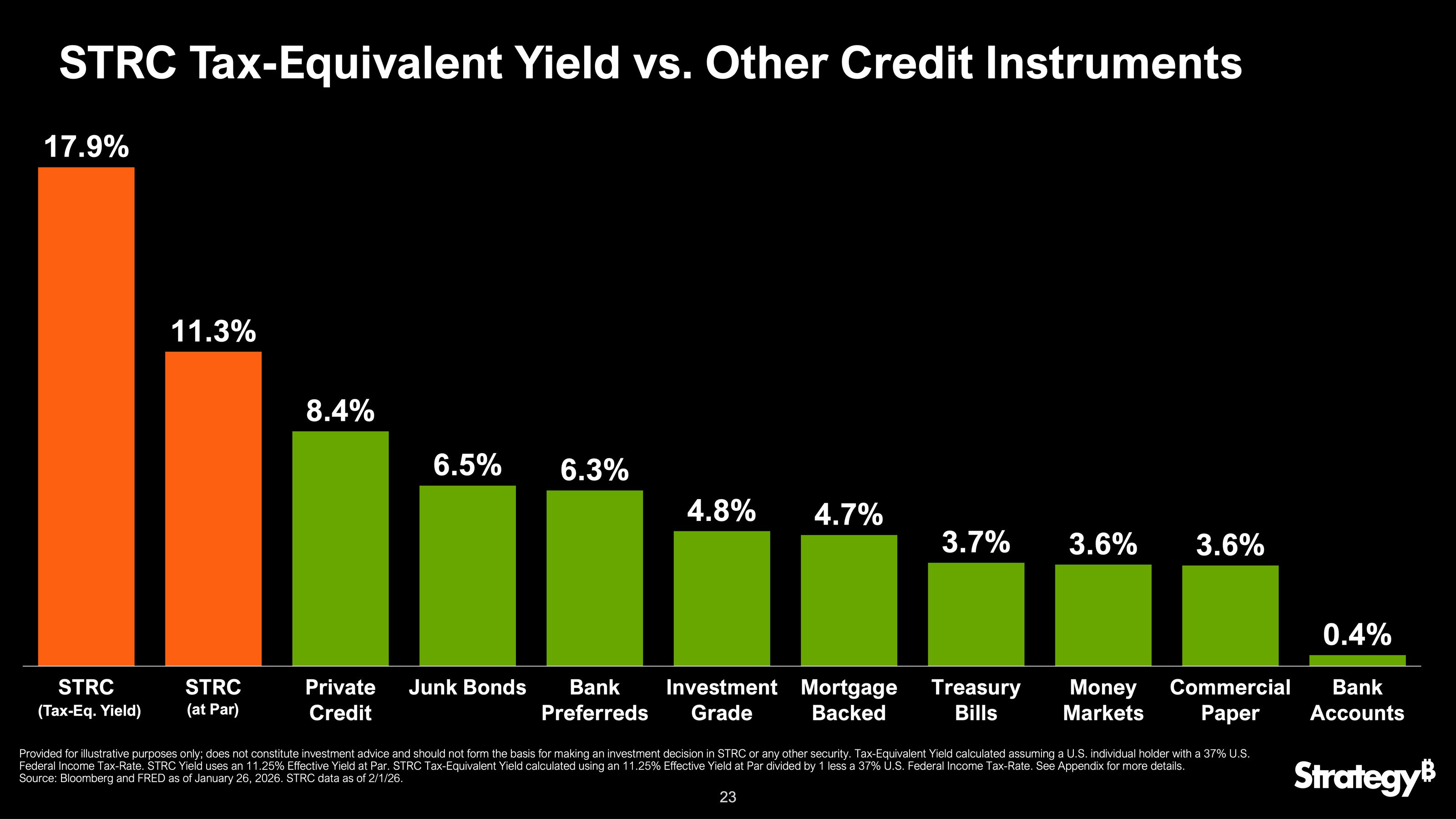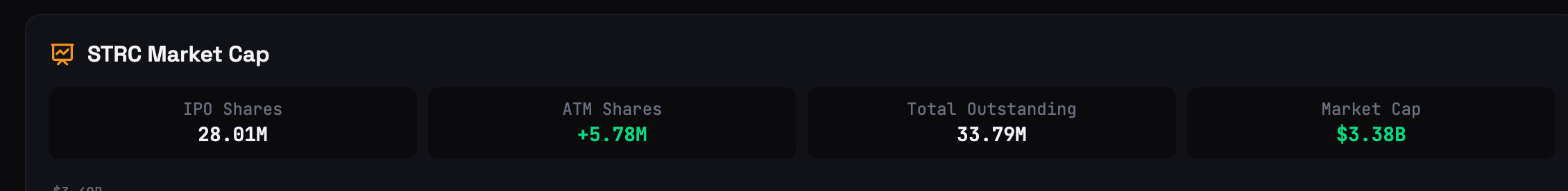 STRC was issued at 100 dollars per share. Roughly 28 million shares were sold, raising about 2.8 billion dollars. A substantial portion was deployed into Bitcoin.