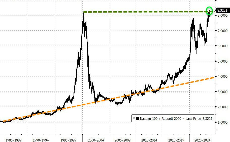 Never before in history have we witnessed such a stark difference between these indices. Not even during the dot-com bubble or any other period. Allow me to jog your memory about what happened in the year 2000, one of the most significant black swan events of all time. Technology companies saw their valuations plummet by around 80%, with many disappearing altogether. A few, the lucky ones, emerged as the industry leaders we know today (e.g., Amazon, Microsoft, etc.).